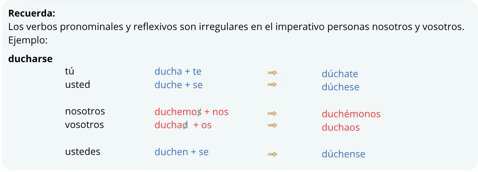 Completa usando el imperativo con verbos pronominales y reflexivos en la persona tú.