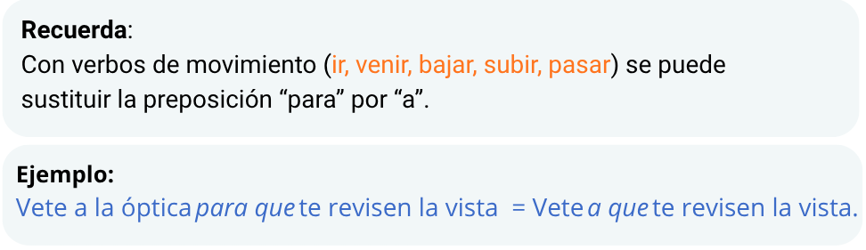Identifica las frases en las que es posible sustituir la preposición “para” por “a”.
