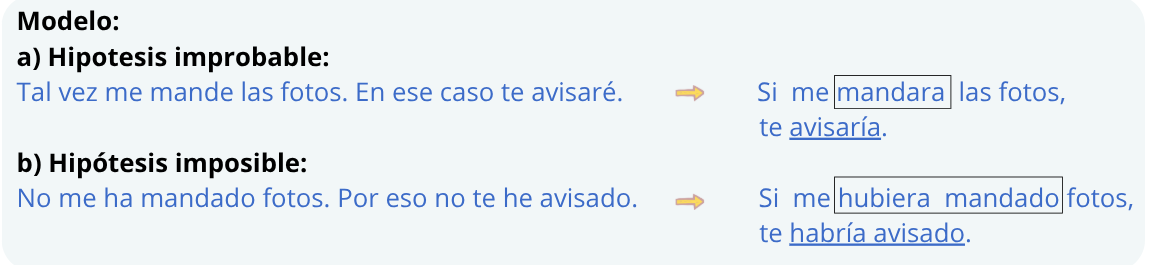 Transforma según el modelo. Para el imperfecto/ pluscuamperfecto de subjuntivo, utiliza la terminación –ara/ iera.