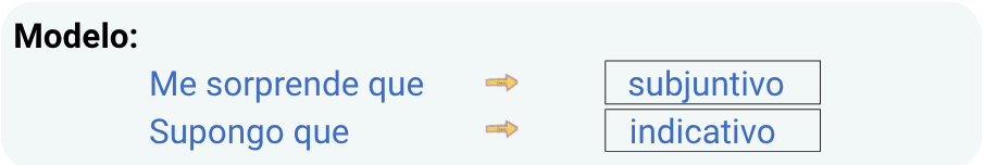 Señala si los siguientes verbos funcionan con indicativo o subjuntivo.