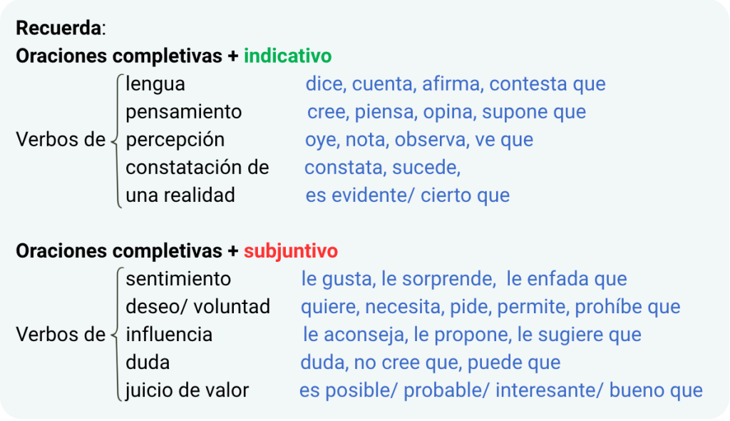 Señala si los siguientes verbos funcionan con indicativo o subjuntivo.