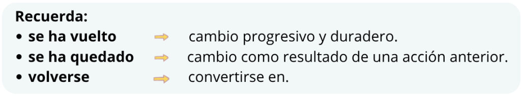 Completa usando volverse, convertirse en o quedarse. Conjuga en el tiempo indicado.